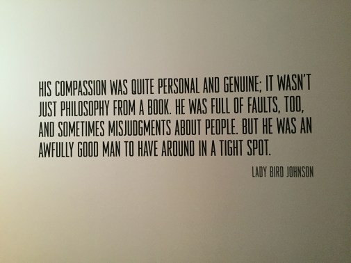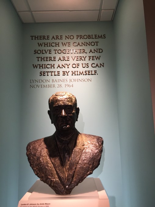 I’ve always gotten the sense that people from LBJ’s generation perhaps don’t like him very much, and I’m sure that has a lot to do with his involvement and his escalation of the US’s involvement in Vietnam. But I also think we have to respect the many things that he did accomplish: legislation furthering Civil Rights, Medicaid/Medicare, immigration reform, space exploration, and a focus on the rural and poor.